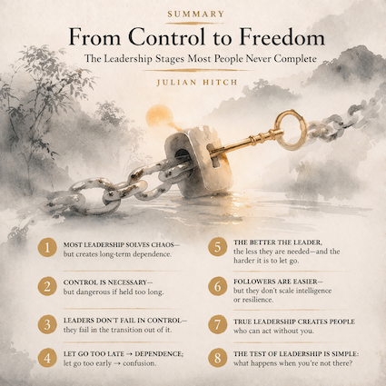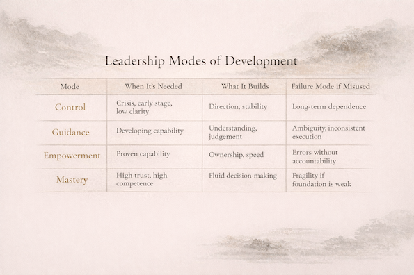 And this is where most leaders fail - not in control, but in the transition out of it. They either hold on too long, creating dependence, or let go too early, creating confusion.